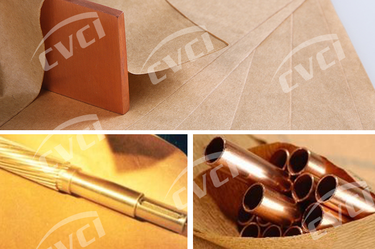 將VCI(氣相緩蝕劑)含浸與平紋或皺紋中性原紙上起到防銹目的,在中性原紙上可通過復(fù)合PE層起防水防潮目的。