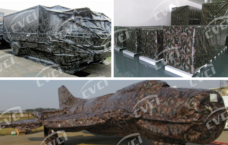 采用該產(chǎn)品包裝金屬制品后,可有效阻隔外界氧氣、水蒸氣、腐蝕性氣體、灰塵、陽(yáng)光等進(jìn)入包裝空間。在密封條件下可有效防止金屬銹蝕,并減緩橡膠、塑料等非金屬材料的老化變質(zhì),用于制做大型設(shè)備、整車裝備外部封套,進(jìn)行整體封存。